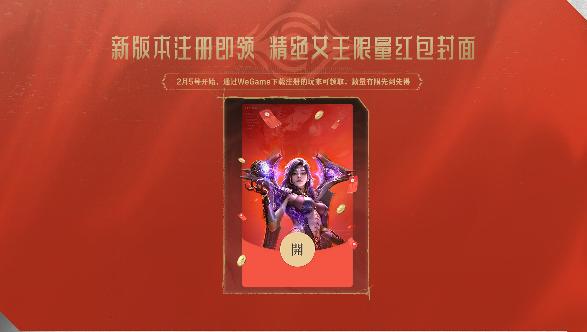 活动期间,用户于WeGame平台下载游戏并且首次创建角色即可获得