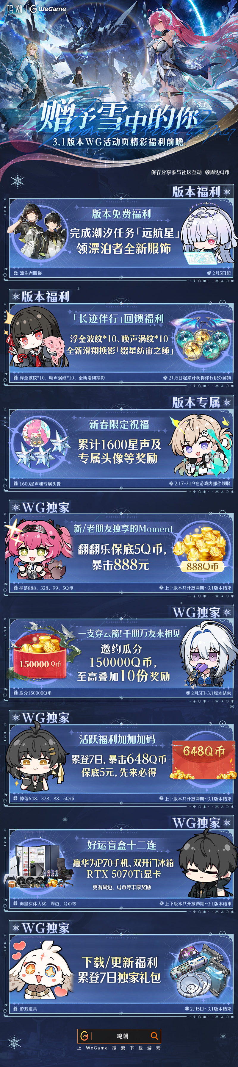· 新玩家判断:2月5日0点后,首次在WG登录,且为有效账号(鸣潮累计游戏时长≥10分钟,且游戏内联觉等级≥3级)