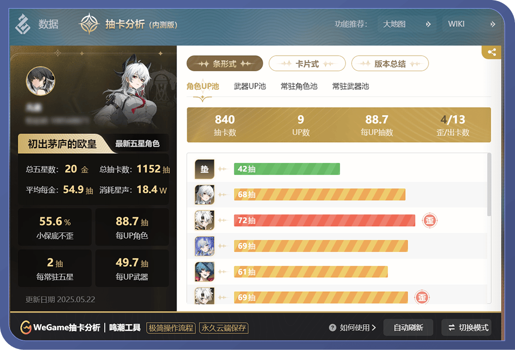 · 使用WeGame抽卡分析工具成功更新数据,次数+2